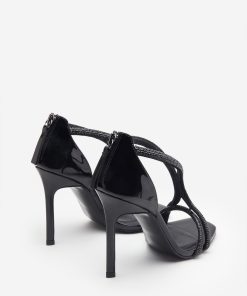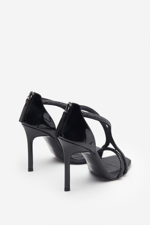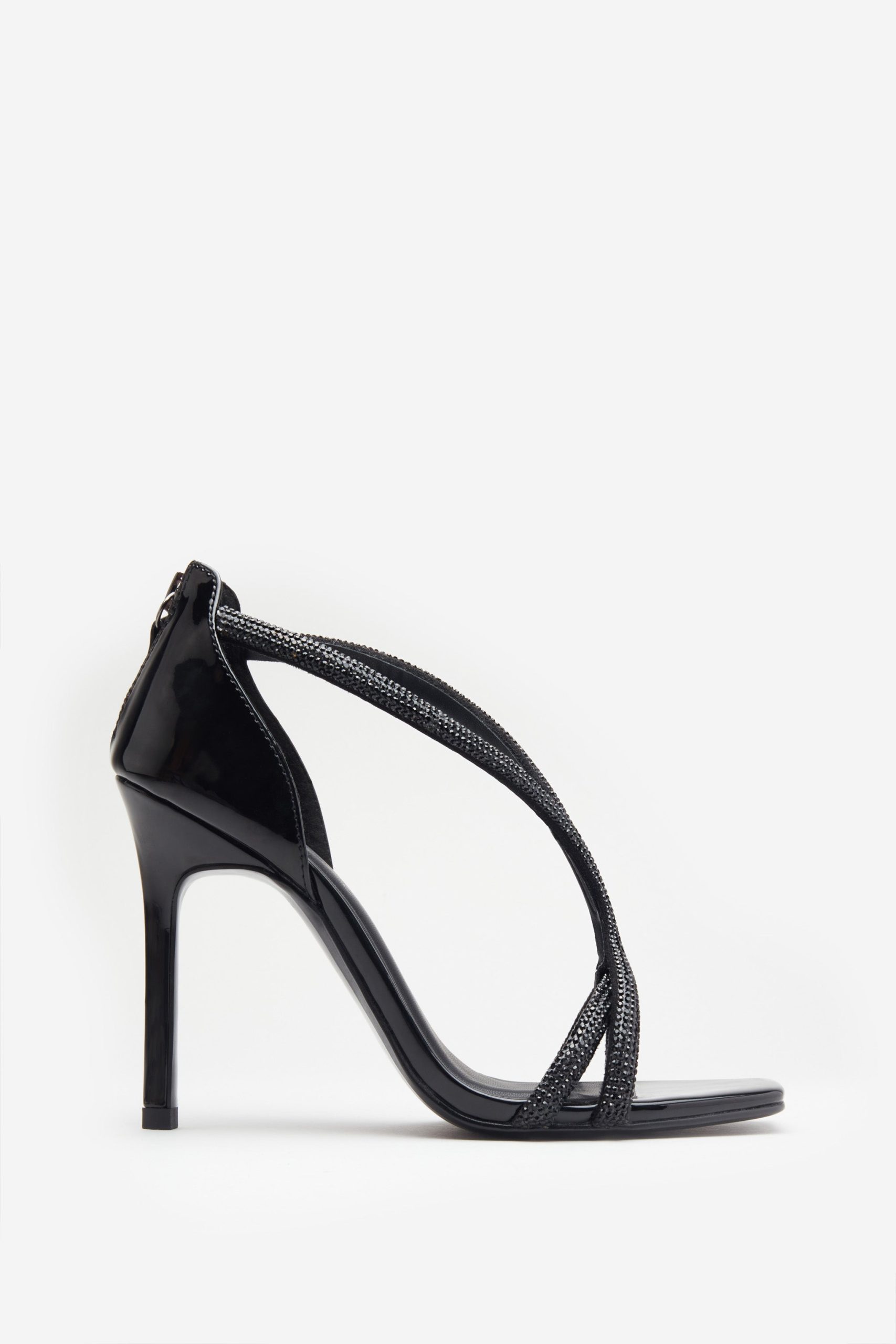Seraphine London™ brings sleek sophistication to your evening wardrobe with this patent stiletto sandal. Wrapped in diamanté-encrusted straps and shaped with a square toe, the silhouette is finished with a zip-back fastening for a clean, modern edge. A cushioned sole ensures comfort through every step, so you can shine from start to finish.