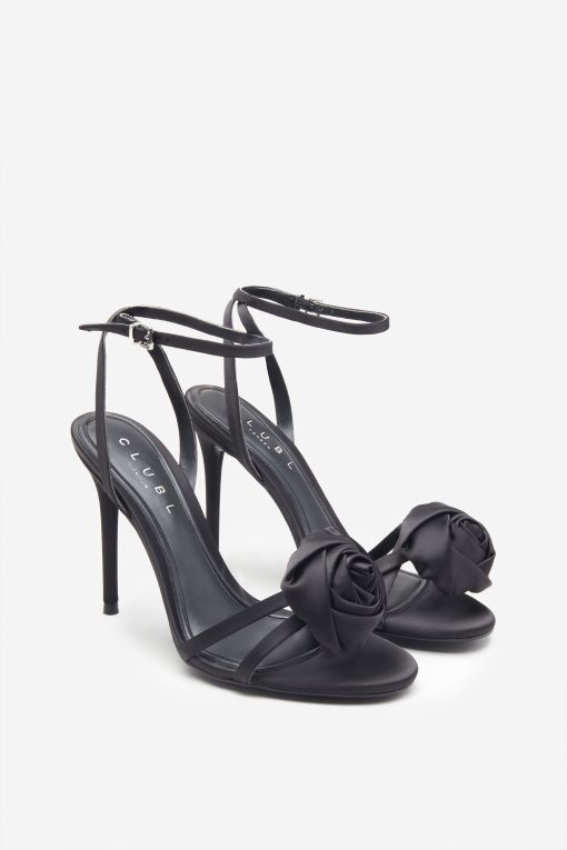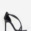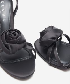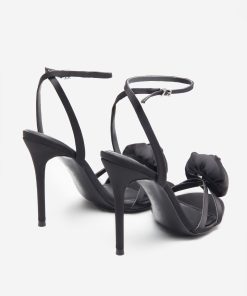Feminine with a touch of drama, the Black Strappy Heels bring a romantic twist to your evening wardrobe. Crafted from opulent black satin, these lace-up stilettos feature a delicate floral corsage across the toe and a softly rounded silhouette. Finished with a secure ankle strap and cushioned sole, they offer beauty without compromising comfort.