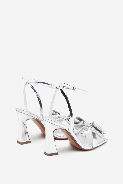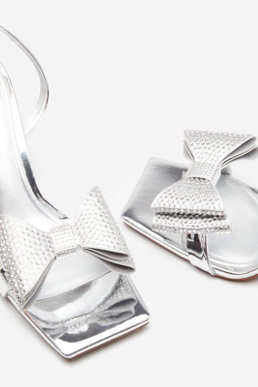 Step into the spotlight with Headlines — a shimmering silver sandal designed to elevate every look. Crafted from glossy patent and set on a comfortable block heel, these square-toe heels feature a diamanté bow detail that draws the eye with every step. Finished with a cushioned sole and adjustable ankle strap, Headlines blends glamour with all-night wearability.