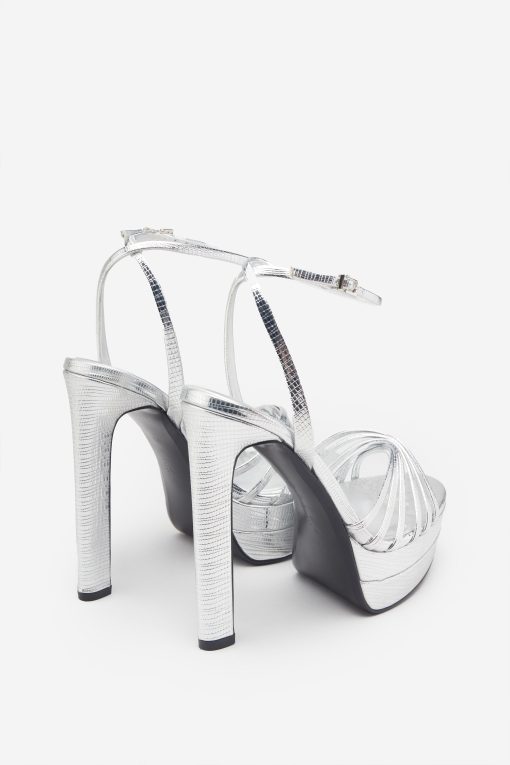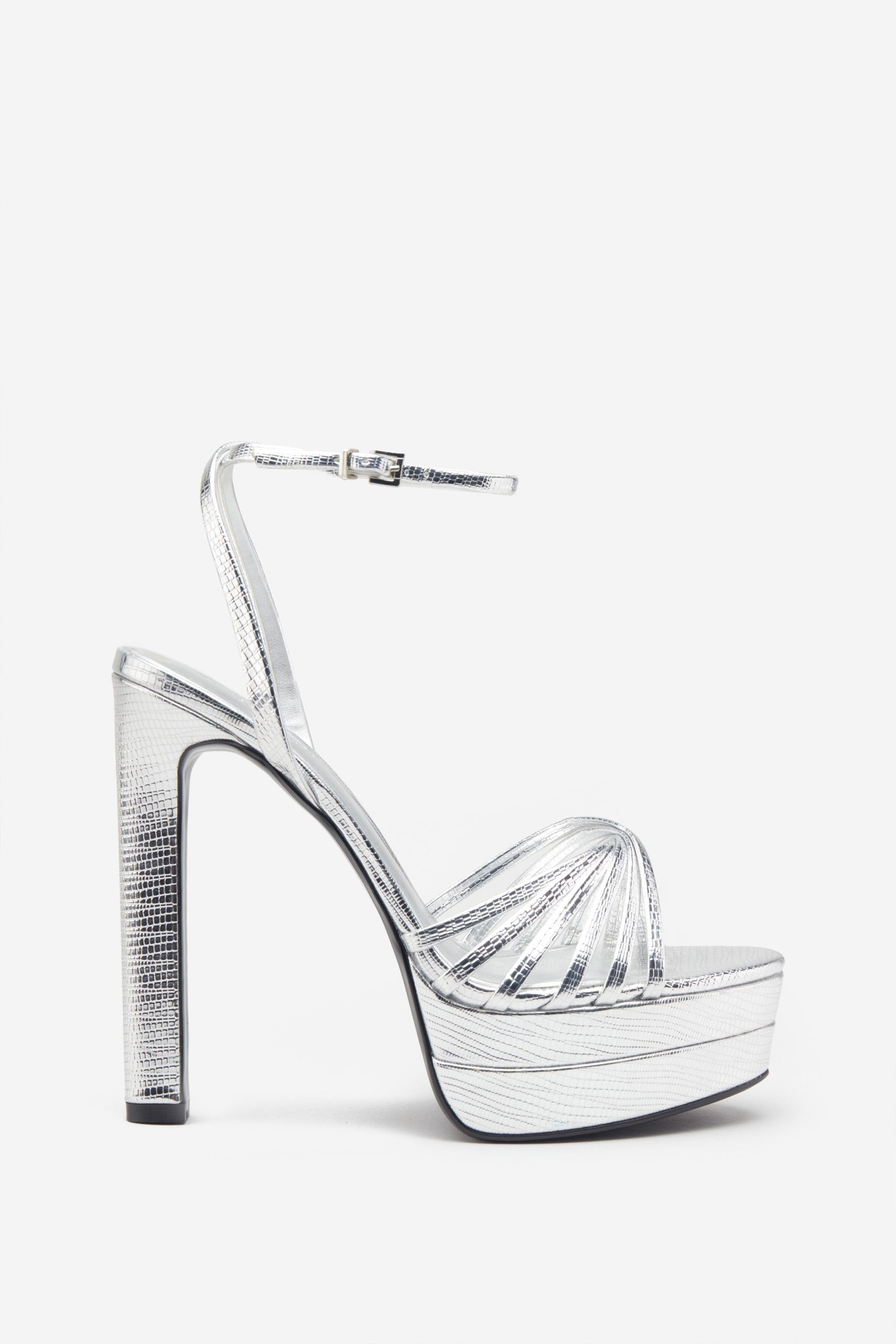 Seraphine London™ introduces a showstopping silhouette for the modern party wardrobe. Crafted in high-shine silver patent with a snakeskin-effect finish, these lace-up platform heels add height, edge, and confidence. The rounded toe and bold block heel are balanced with cushioned soles to carry you comfortably through every celebration.