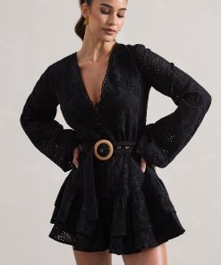 Women’s Seraphine London™ | Black Broderie Belted Ruffled Matching Set | Black
