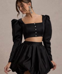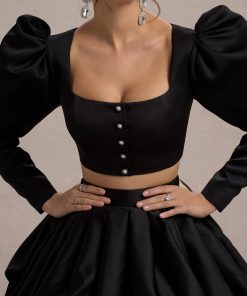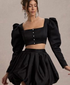 Seraphine London™ introduces a bold layer of elegance with this cropped satin jacket, crafted to frame and elevate your evening ensemble. Designed in sleek black with dramatic puff sleeves, this tailored piece combines structured femininity with modern glamour. Whether styled over a gown or with high-waisted tailoring, it’s a wardrobe accent that exudes confidence.