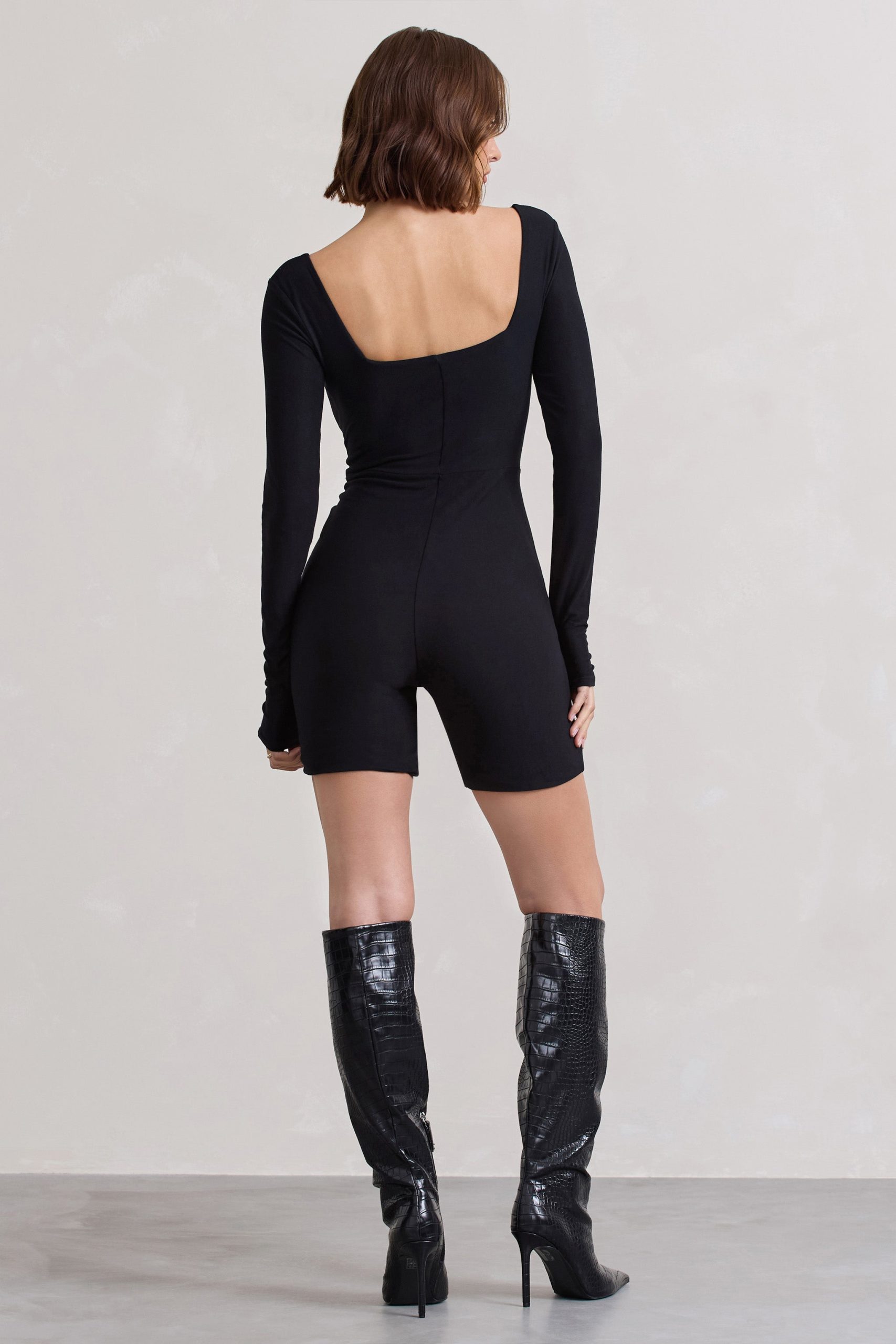 Seraphine London™ introduces a sleek essential designed for effortless transitions from day to night. Crafted from premium brushed jersey, this black unitard features a sculpting bodycon fit, soft-touch feel, and a clean square neckline with long sleeves. Whether styled for off-duty errands or dressed up for an evening out, this one-piece delivers comfort, confidence, and versatility in equal measure.