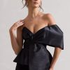 Seraphine London™ introduces an ultra-feminine statement piece crafted for evenings that demand attention. Designed in premium stretch jersey with a sheer mesh overlay, this sculpting crop top features an off-the-shoulder Bardot neckline, full ruching, and long mesh sleeves. Refined yet bold, it’s the perfect match for a high-waisted skirt or tailored trousers.