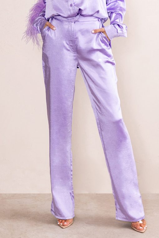 Seraphine London™ introduces an effortlessly glamorous take on tailored dressing with these lilac wide-leg trousers. Designed in a fluid satin that drapes to perfection, this high-waisted silhouette elongates the frame while pocket detailing adds subtle structure. Pair with the matching Catch My Eye satin shirt for an ensemble that speaks volumes — from elegant brunches to al fresco dinners under the stars.