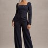 Seraphine London™ blends power dressing with refined allure in this corset-structured blazer. Crafted from premium heavy crepe in a deep navy tone, the tapered silhouette features a plunging V-neckline and sculpted high waist for a tailored, feminine finish. Long sleeves and a corset-style fastening complete this elevated design — perfect for after-dark statements and refined evening dressing.