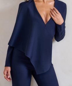 Seraphine London™ elevates classic tailoring with a bold, modern twist in this navy jumpsuit. Crafted from premium stretch crepe, this long-sleeved silhouette features a deep plunging neckline and a dramatic one-shoulder cape that adds instant sophistication. Designed for a flawless fit, this piece flatters the form while offering comfort and movement—perfect for making an impression at any refined occasion.