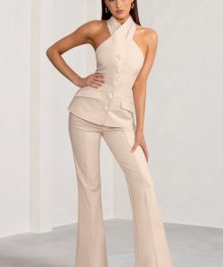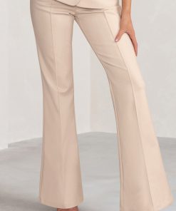 Understated sophistication with a tailored edge. These wide-leg trousers in soft stone are designed to sculpt and flatter, crafted from a premium cotton blend with just the right amount of stretch. A high-rise waist and carefully placed seams define the silhouette, while practical pockets offer structure and function. Perfect from AM to PM — refined, versatile, and elevated.
