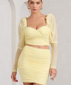 Seraphine London™ presents a statement silhouette designed to captivate. This vibrant cropped top is crafted from soft slinky jersey and mesh, featuring voluminous puff sleeves, deep cuffs, and a ruched bodice for a sculpted fit. A square neckline with moulded cups adds refined structure, perfectly balancing drama and elegance. Bold, bright, and made to be seen.